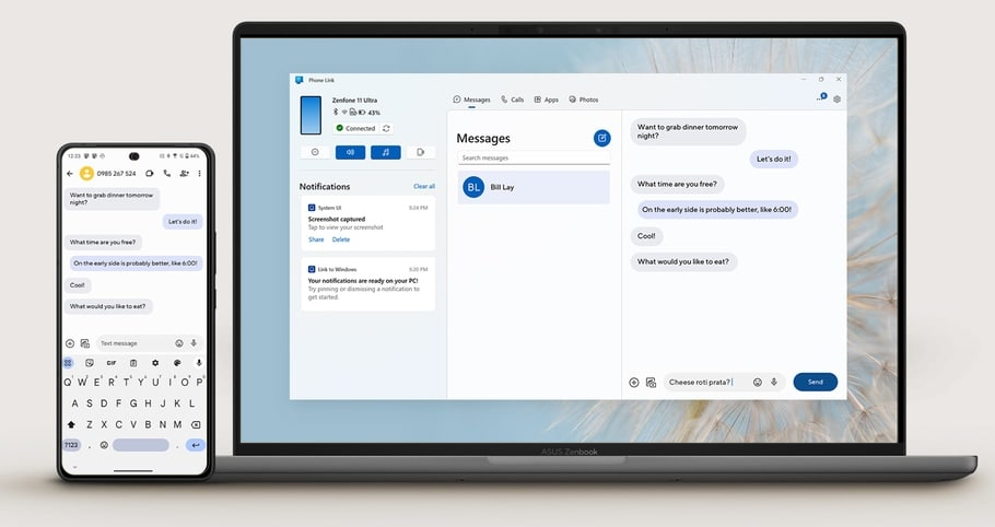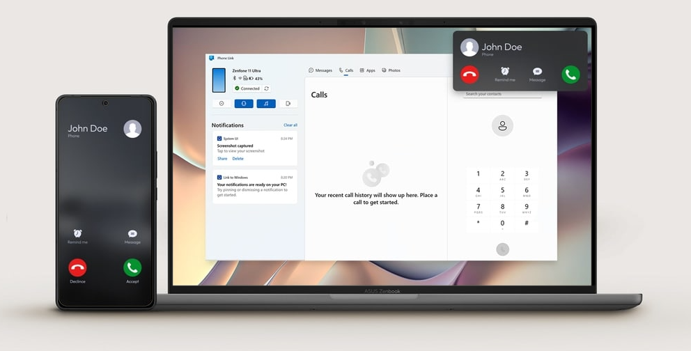 Effortlessly answer calls, manage notifications, and transfer files directly from a single device, your Zenbook A14. And easily use your phone as a webcam.