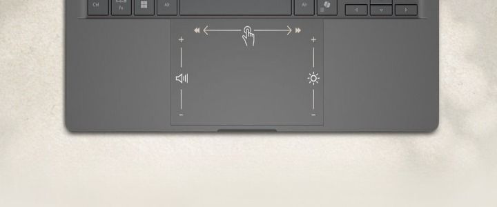 The enlarged touchpad matches the display's aspect ratio for intuitive control. The extra area increases comfort and makes gestures easier.
