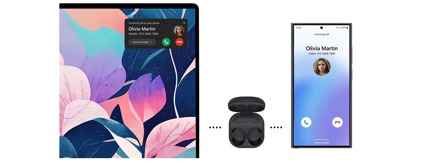 **Available on Samsung Galaxy Buds2 Pro updated to the latest firmware version, Samsung Galaxy smartphones and Galaxy Tab devices with One UI 4.1.1 or later versions and Galaxy Book series devices with One UI 6.0 or later versions installed.