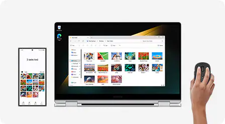 Manage your creative projects with flexibility across devices with Multi Control. Use your Galaxy Book4 360's keyboard with a mouse to navigate through content on your smartphone or Galaxy Tab. Drag and drop or copy and paste text, images and files between devices to put your ideas together.