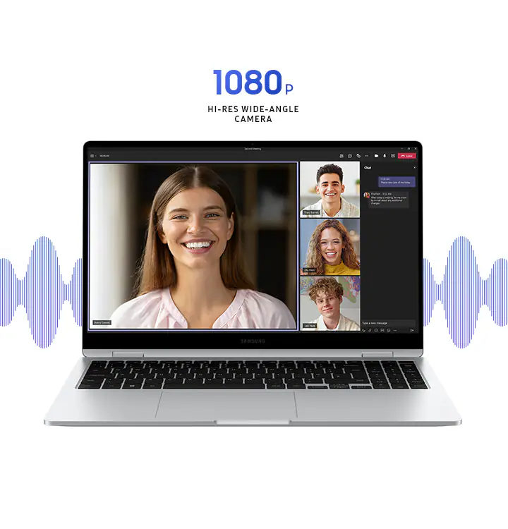 Get ready to take center stage in video calls with the 1080p wide-angle webcam and high-quality mics with AI noise canceling.