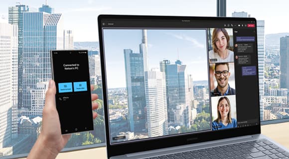 Connect your smartphone to your PC via Phone Link to access recently viewed webpages or launch up to 5 mobile apps right from your laptop. Use smart AI features and get an expanded view on the big screen of Galaxy Book4 Edge.[4]