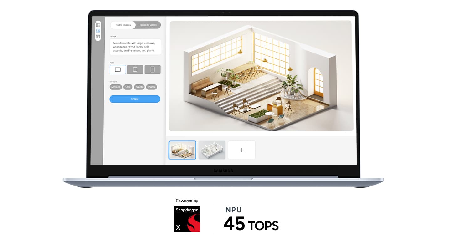 Stay focused and productive with reliable performance that runs smoothly with AI. Powered by the Snapdragon X processor with a leading NPU capable of 45 TOPS for advanced AI processing, Galaxy Book4 Edge is made to keep up with lectures, deadlines, and your daily to-dos.[2]