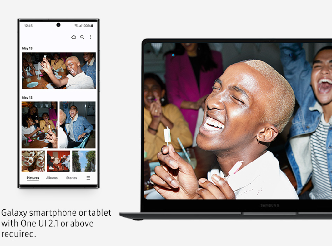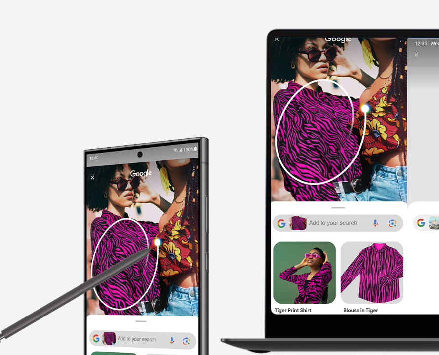 Users must link their Samsung Galaxy Al enabled smartphone through 'Link to Windows/Phone Link' including being signed into the same Microsoft account. Results may vary depending on visual matches. Requires internet connection.