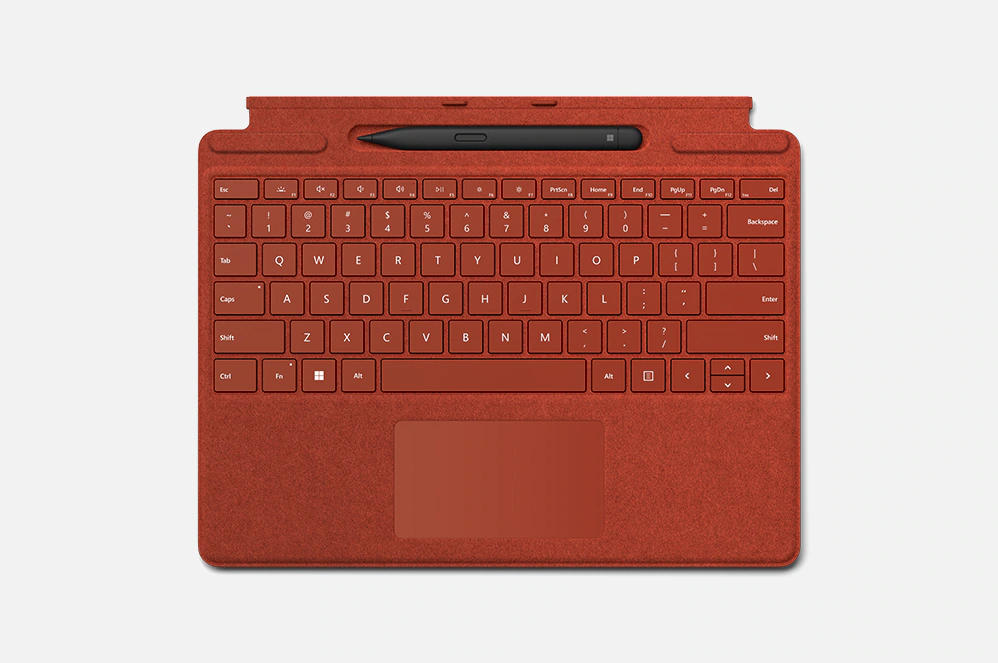 Available in rich colours,[2] Surface Pro Signature Keyboard adds a warm, comfortable touch to everyday tasks. Covered with luxurious Alcantara material.