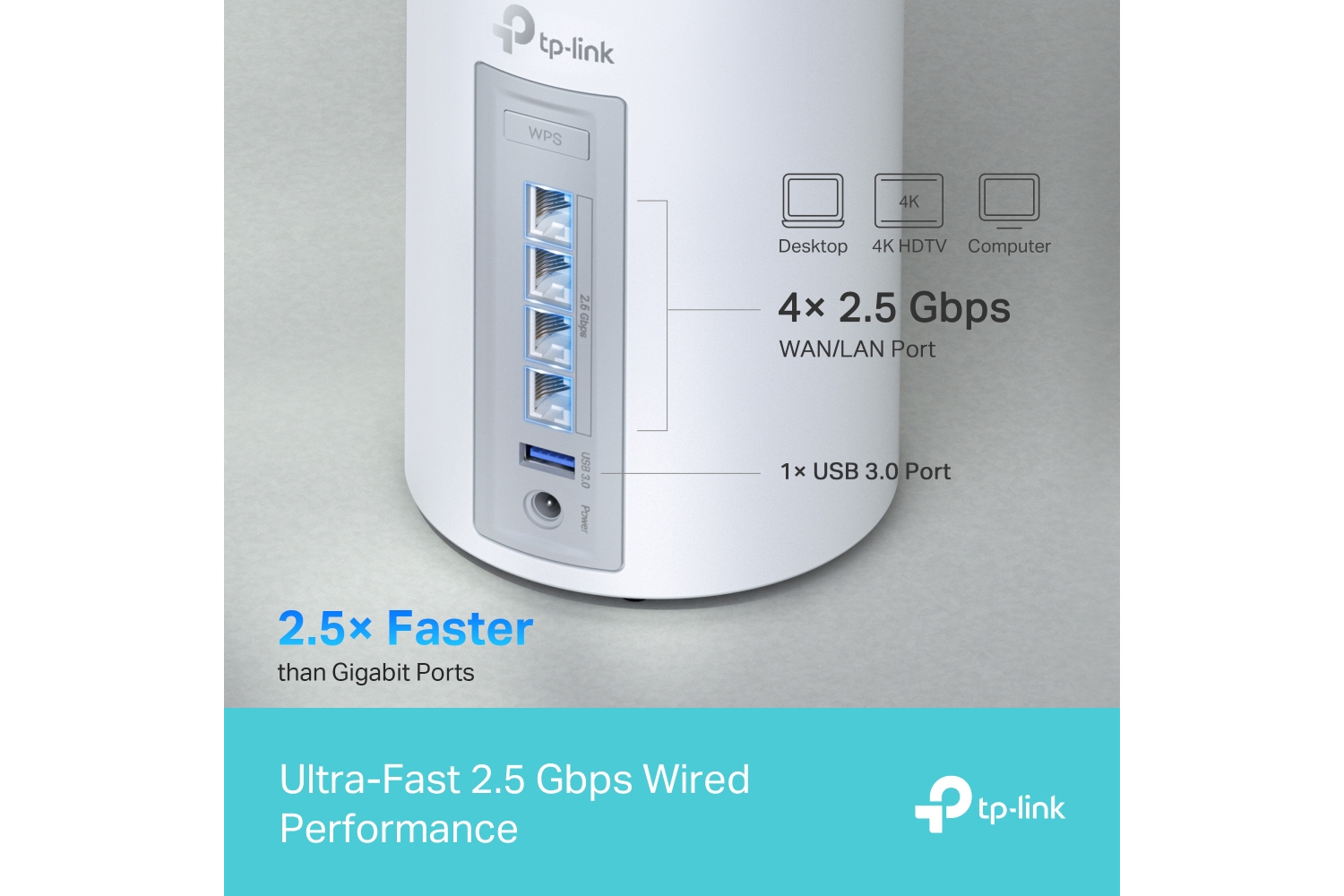 - 2.5 Gbps Wired Connections – 4× 2.5 Gbps ports ensure max flexibility and boosted throughput