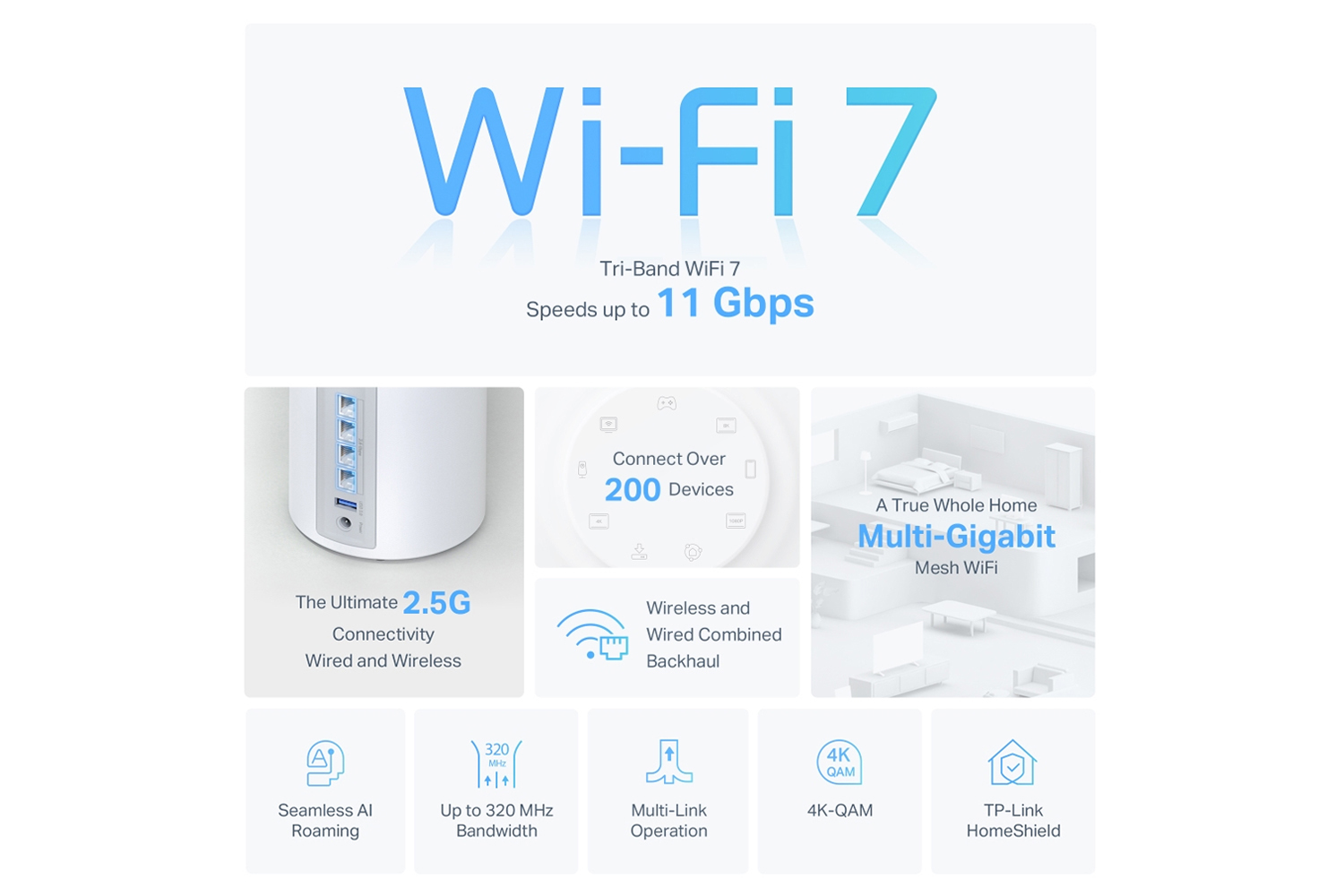 WiFi 7 has arrived with jam-dropping performance - offering accelerated throughput, lower latency, stronger anti-jamming and higher efficiency. Join the league of pros and experiance the sheer performance of the next generation WiFi.