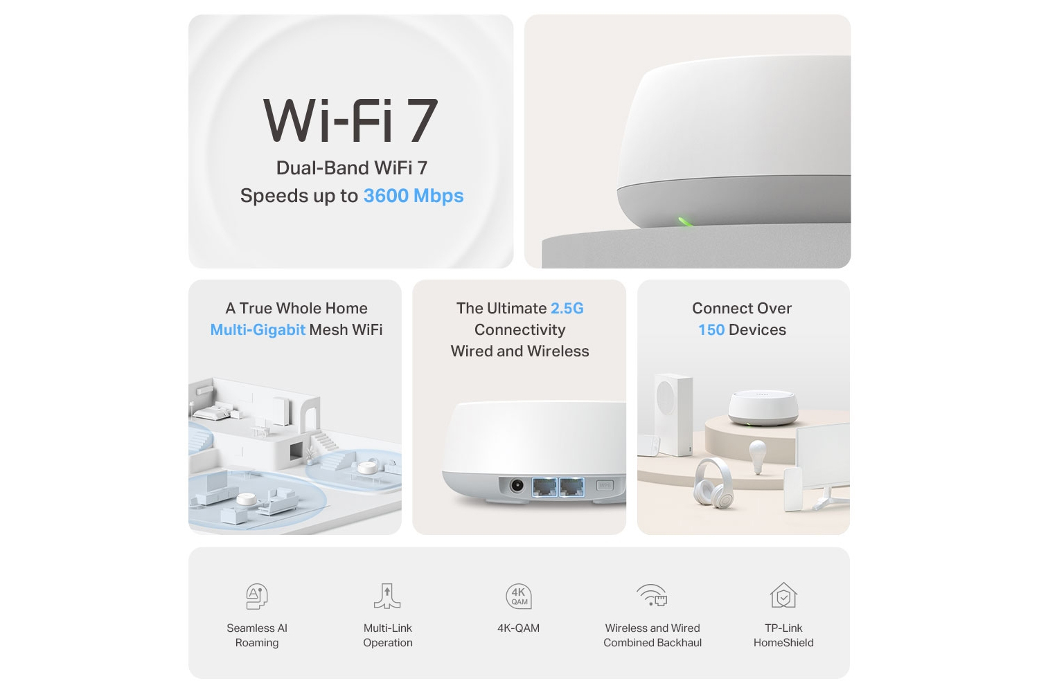 - Seamless AI-Driven Roaming – Forms a unified netwok with built-in AI-Roaming creating the ideal Wi-Fi solution for your home