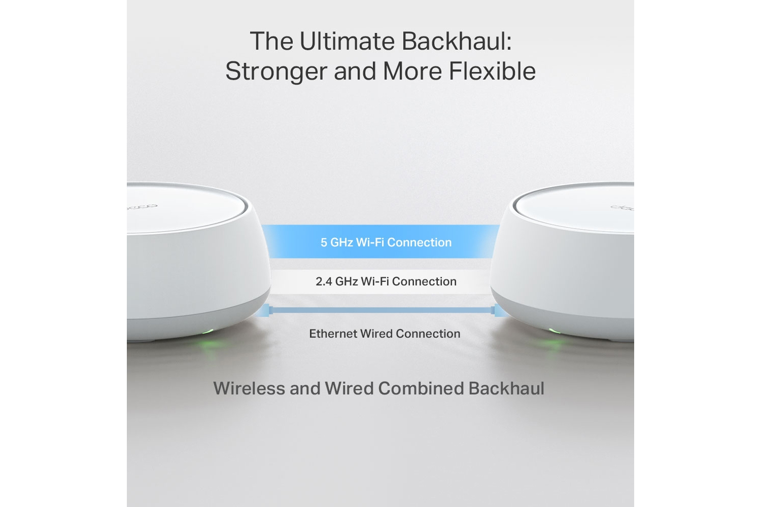 - Wireless and wired combined backhaul – Connects a wireless and wired backhaul with each unit simultaneously to improve overall throughput and reduce latency