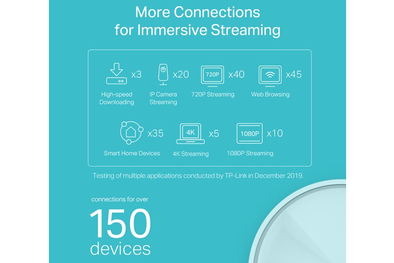 Enjoy a more efficient network with 4× the average throughput on connected devices in dense environments thanks to Wi-Fi 6 technology. Deco X20 is tested to connect over 150 devices without dragging down performance.