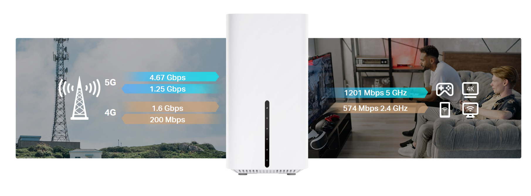 Take advantage of your advanced 5G network with download speeds up to 4.67 Gbps. Share your 5G network with multiple Wi-Fi devices and enjoy uninterrupted Ultra HD movies, blazingly fast file downloads, and smooth video chats and video conferences. At the same time, NX200 is backward compatible with 4G mode.**