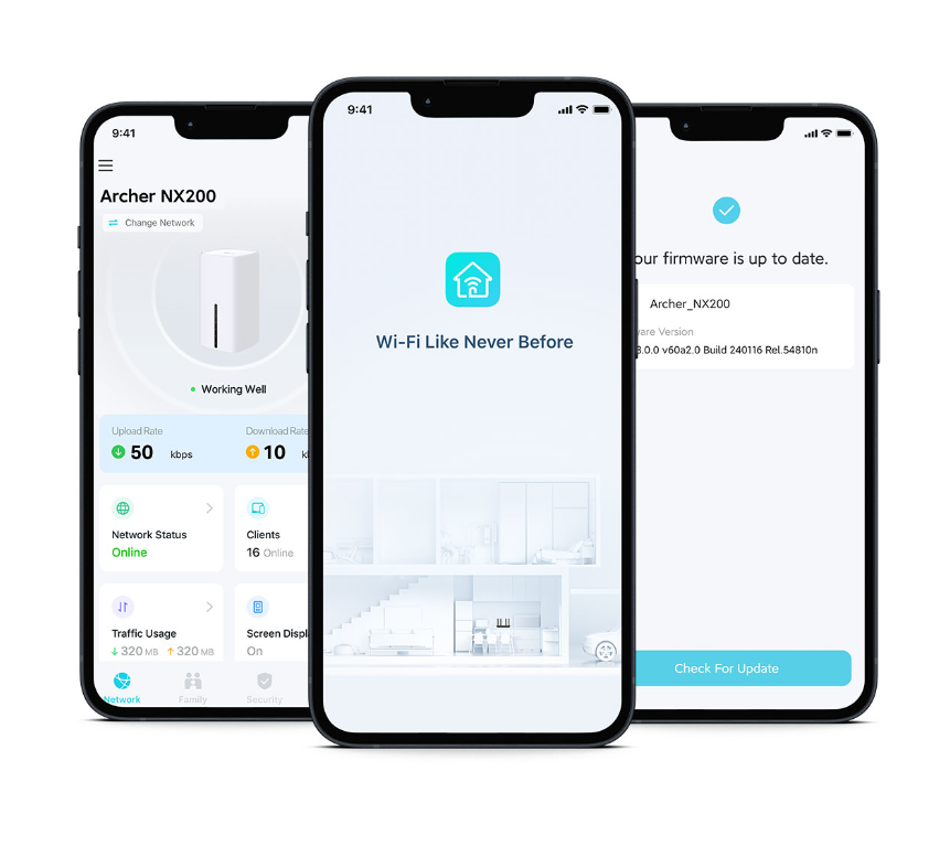 Set up the Archer NX200 in minutes thanks to its intuitive web interface and the powerful Tether app. Manage network settings, including Parental Controls and Access Control, from any Android or iOS device. Tether also provides Automatic Firmware Updates to always give your network the latest performance and security.