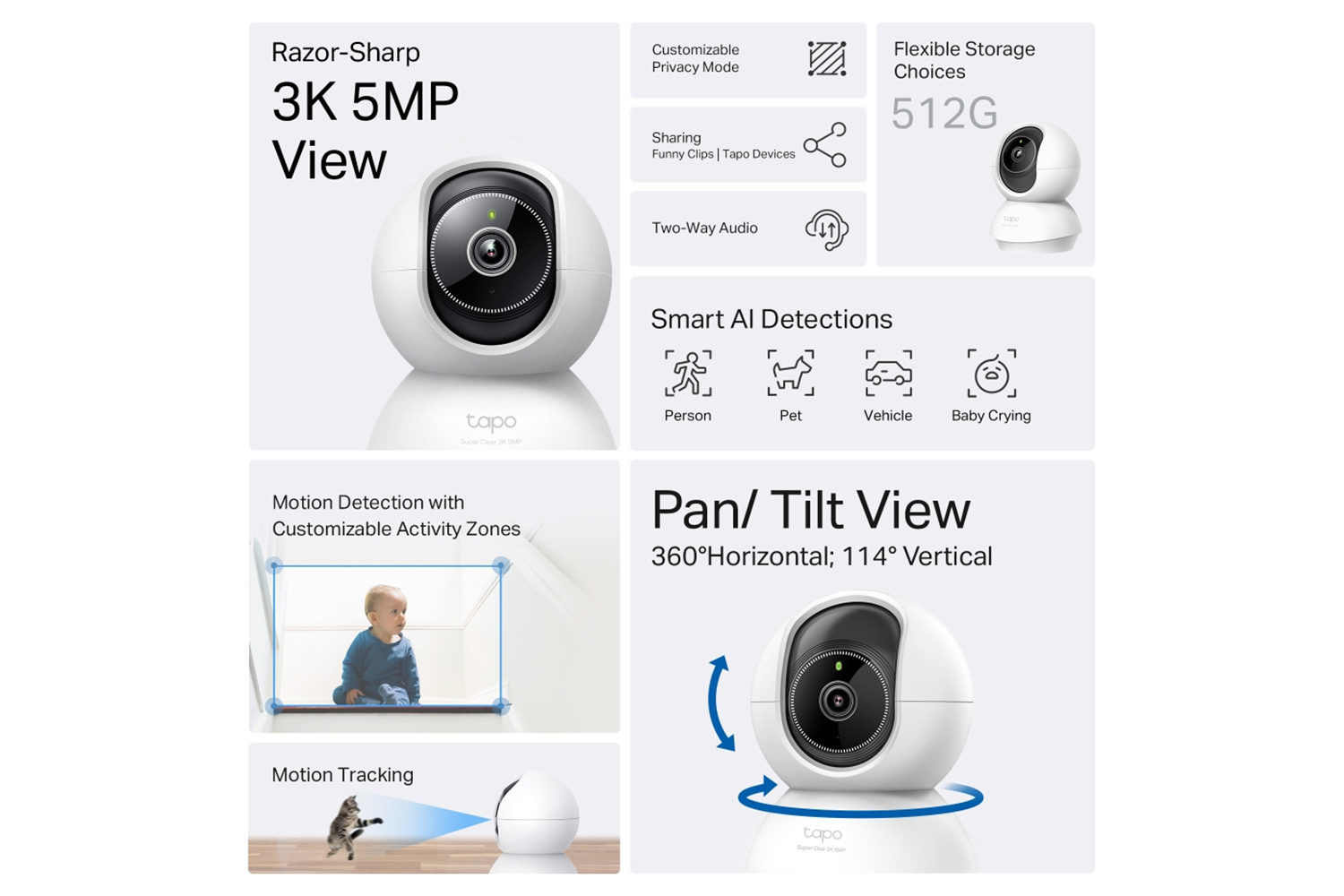 - Wide range of movement: Enjoy a full 360º horizontal and 114º vertical range for pan and tilt, allowing you to cover more area