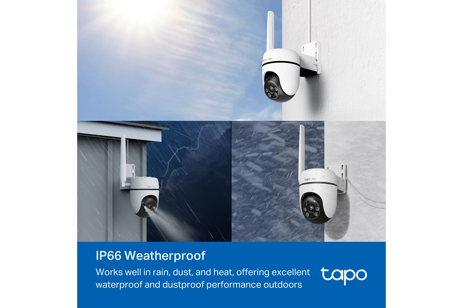 With IP66 weatherproofing, Tapo C501GW offers excellent waterproof and dustproof performance for outdoor scenarios. It works well in rain, dust, and heat, operating reliably in different environments.
