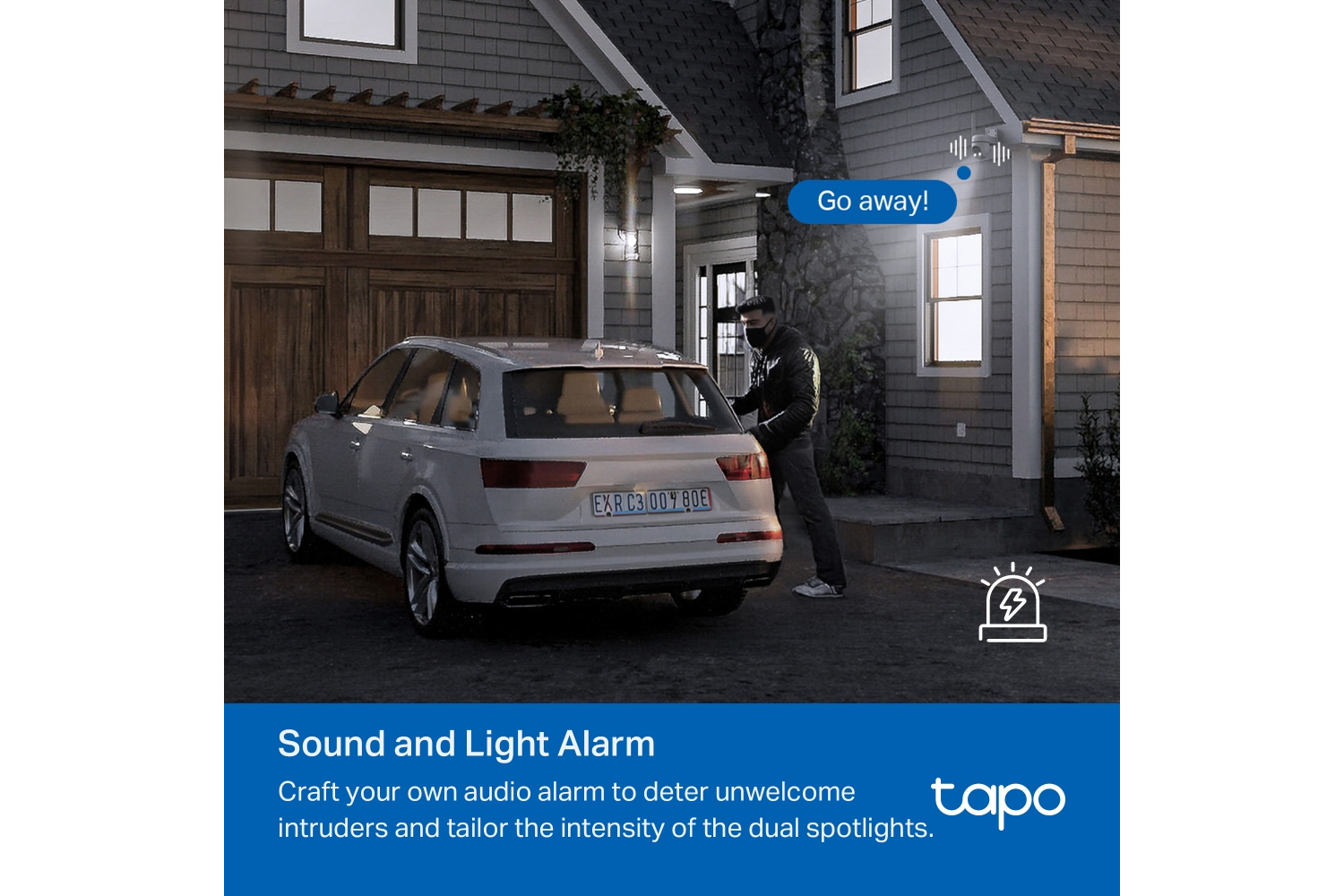 - Sound and light alarm: Craft your own audio alarm to deter unwelcome intruders and tailor the intensity of the dual spotlights