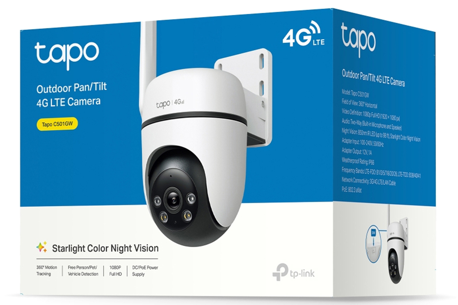 Backed by TP-Link's 4G networking expertise, Tapo C501GW reliably connects through 4G LTE networks, ideal for locations like garages, vacation homes, warehouses, and farms where constant Wi-Fi is unavailable. Simply plug in a 4G SIM card (not included) for an easy, hassle-free internet setup.