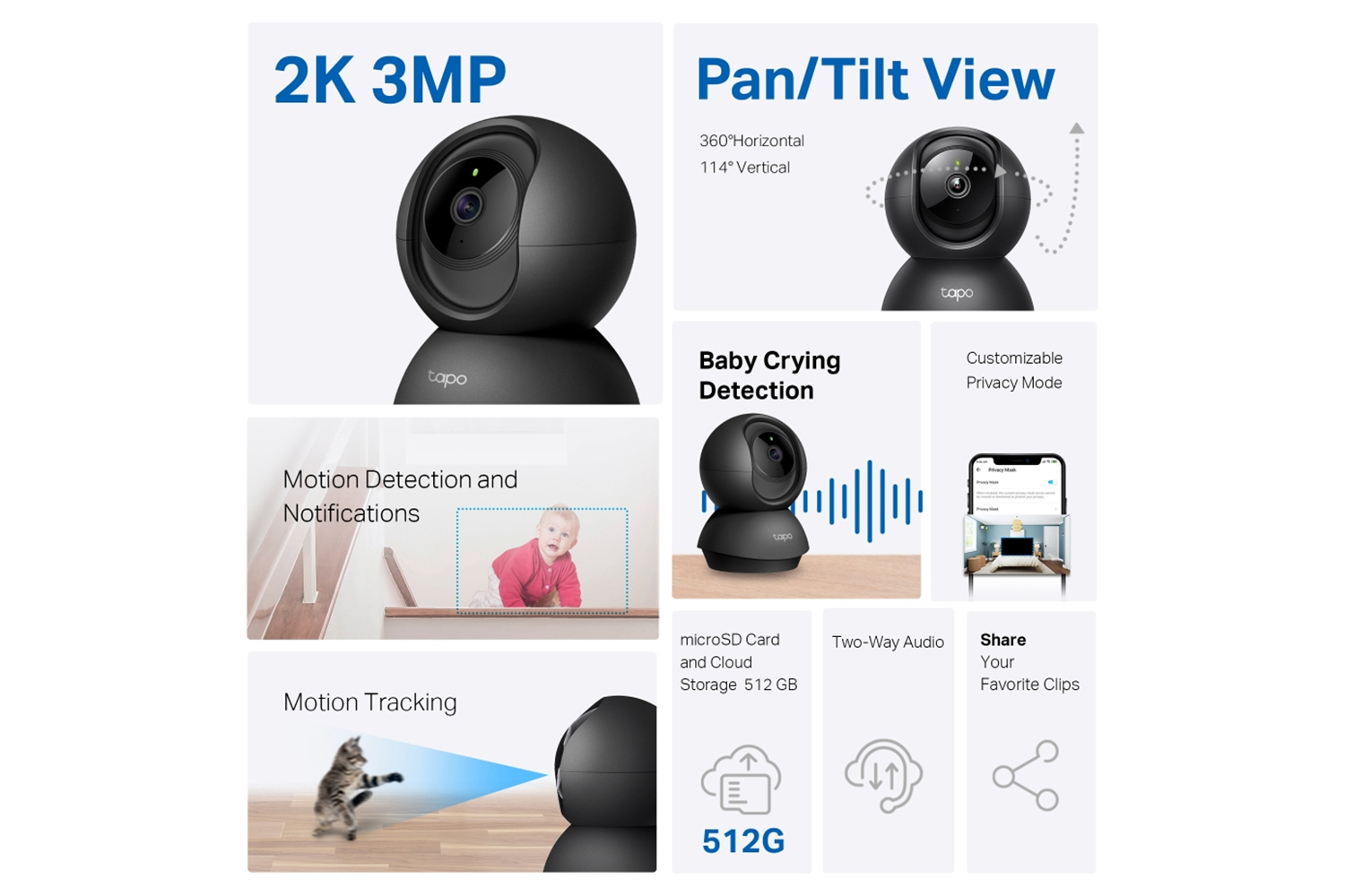 - Detection & instant notification: Get instant push notifications when motion or a person is detected, subscribe to tapo care to for baby crying detection