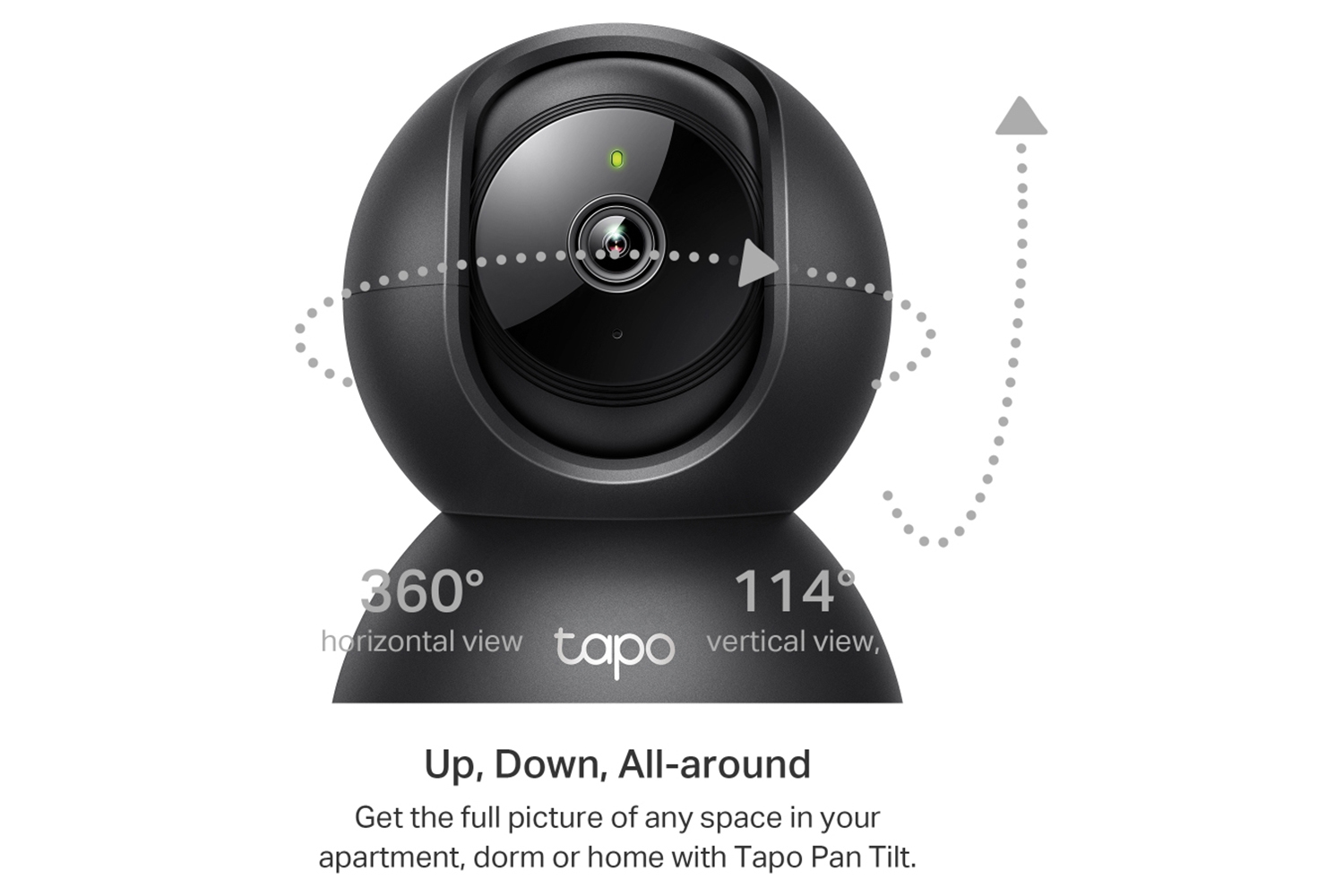 - Up, down, all around: See everything across an entire room or walkway with the 360° horizontal and 114° vertical range pan/tilt field of view