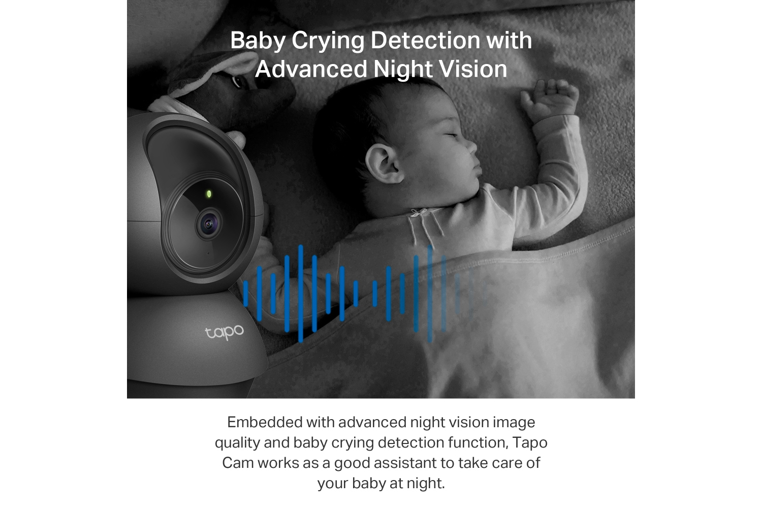 Your second eyes and ears Embedded with advanced night vision and baby crying detection, the Tapo Cam reinforces your baby care around the clock.