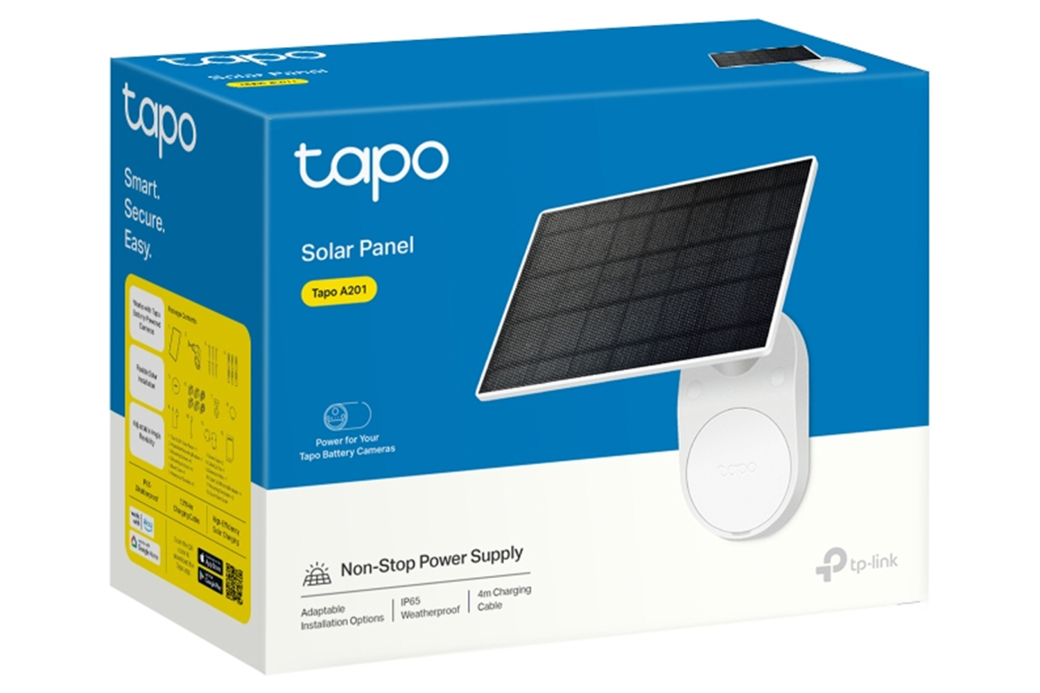 Designed for seamless integration, the Tapo A201 offers a sleek unified look or flexible positioning with a 4m charging cable for maximum sunlight exposure. Enjoy green, endless power.