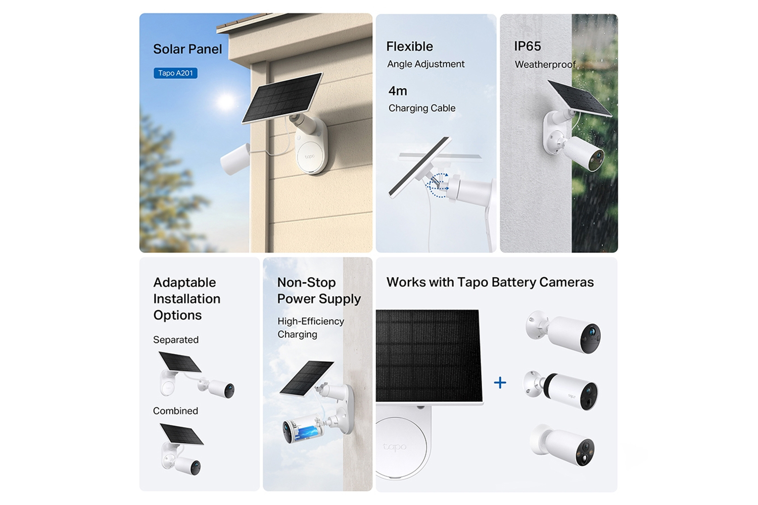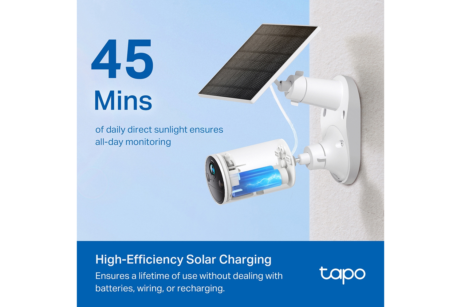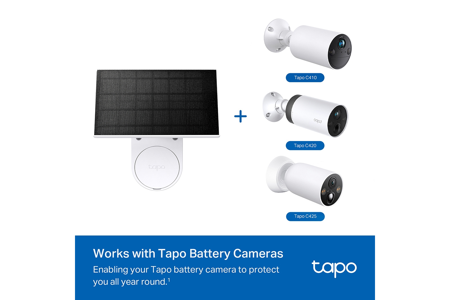 Compatible with all Tapo Battery Cameras, enabling your Tapo battery camera to protect you all year round.