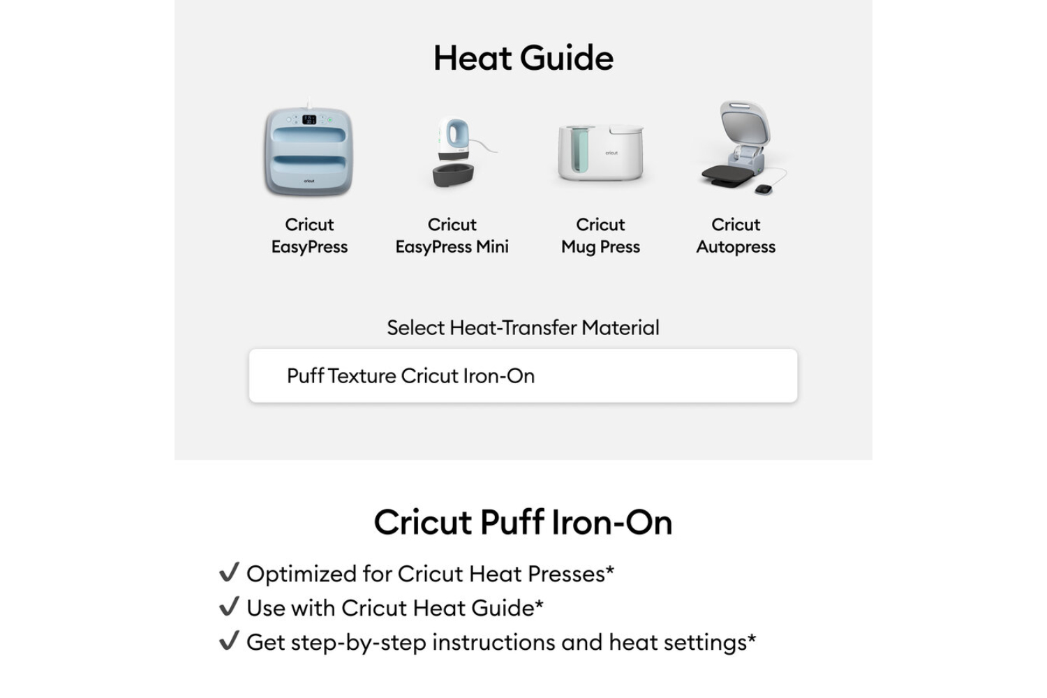 Puff Iron-On is perfect for T-shirts, sweatshirts, and more. Optimized for Cricut cutting machines and Cricut heat presses.