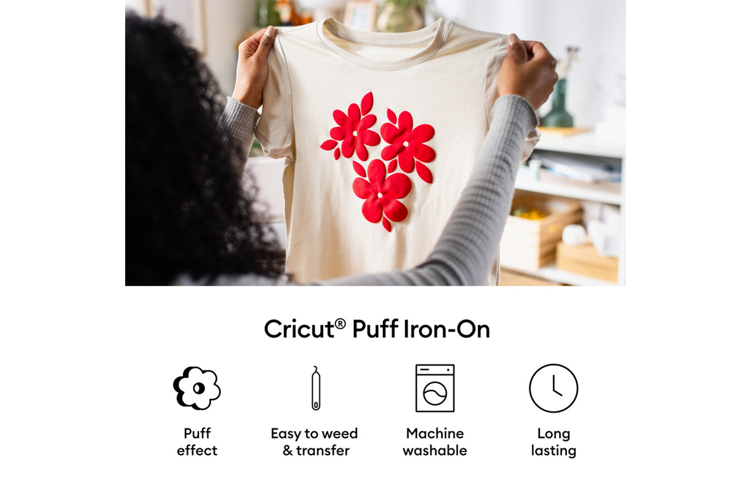 Puff Iron-On is perfect for T-shirts, sweatshirts, and more. Optimized for Cricut cutting machines and Cricut heat presses.