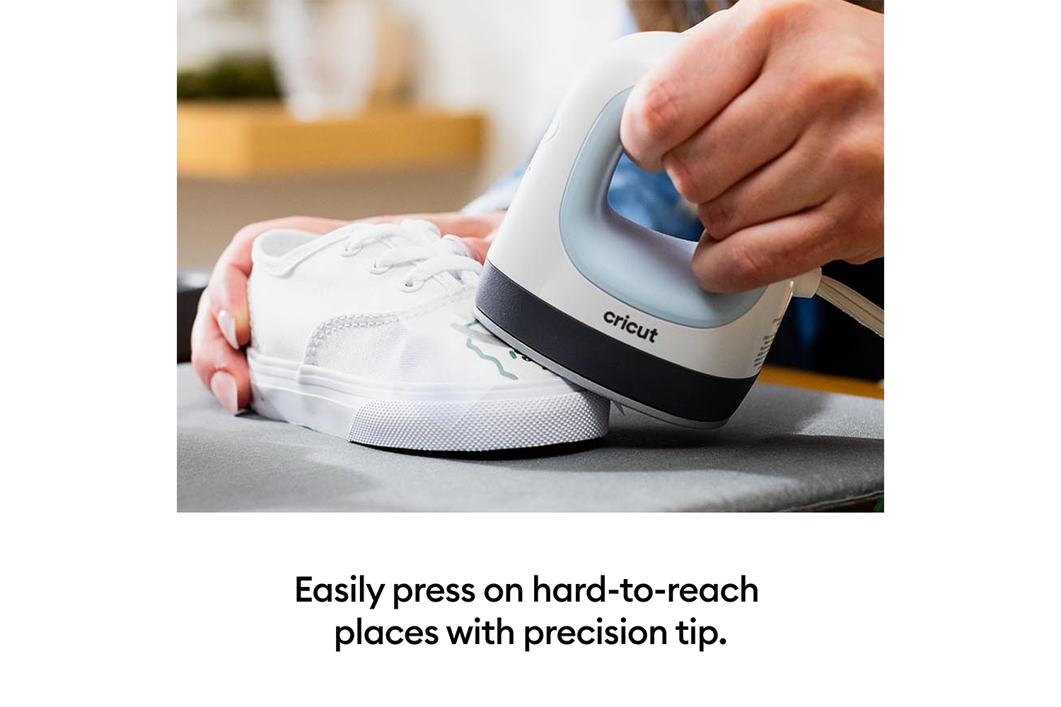The Cricut EasyPress Mini is the perfect compact heat‑press solution for intricate, small‑scale and uniquely shaped projects. Designed to deliver professional heat‑transfer results in places traditional presses can’t reach, it combines the speed and durability of a heat press with the portability and ease of an iron. Ideal for T‑shirts, baby clothes, hats, shoes, stuffed toys, appliqué, quilting and more, this mini yet powerful tool helps you achieve flawless long‑lasting transfers with minimal effort.