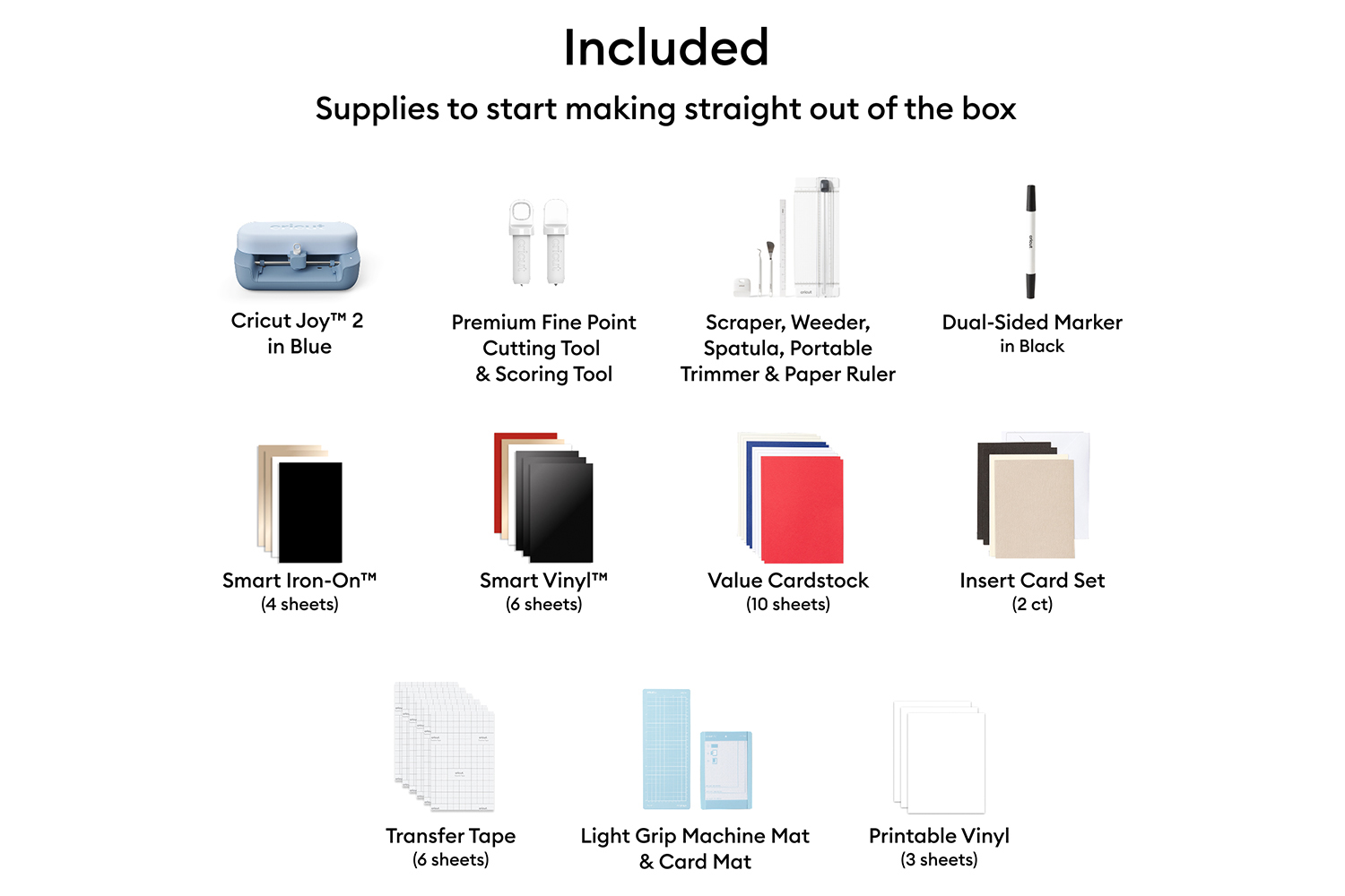 Make a wide variety of projects right out of the box and save. The Essential Bundle includes Smart Vinyl, Smart Iron‑On, value cardstock, insert card sets and printable vinyl—enough to create up to 35 projects [1].