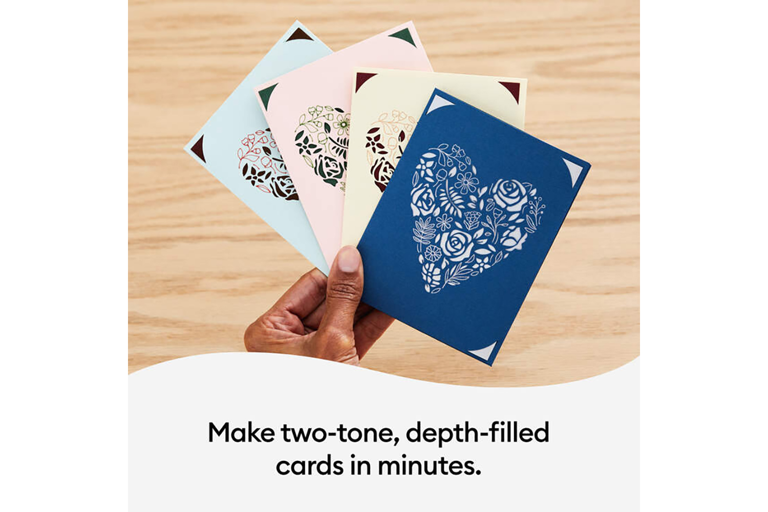 - Create vibrant two-tone greeting cards without the mess or hassle of glue
