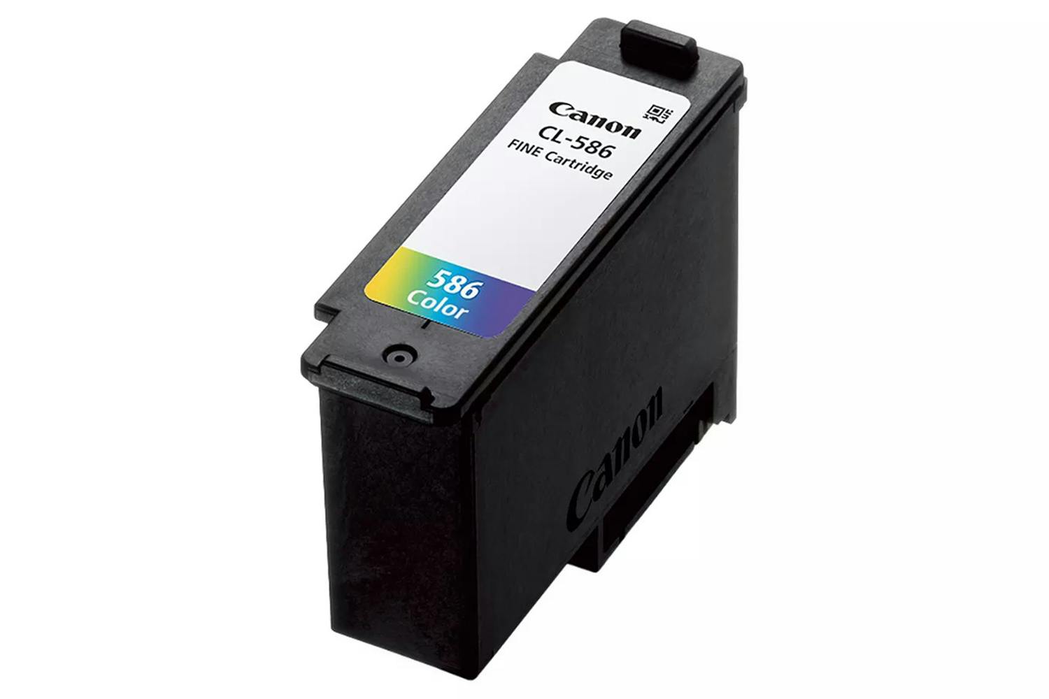 The Canon CL-586 Colour Ink Cartridge, 9.9 ml contains cyan, magenta and yellow inks in a single cartridge, with a page yield of up to 180 pages.