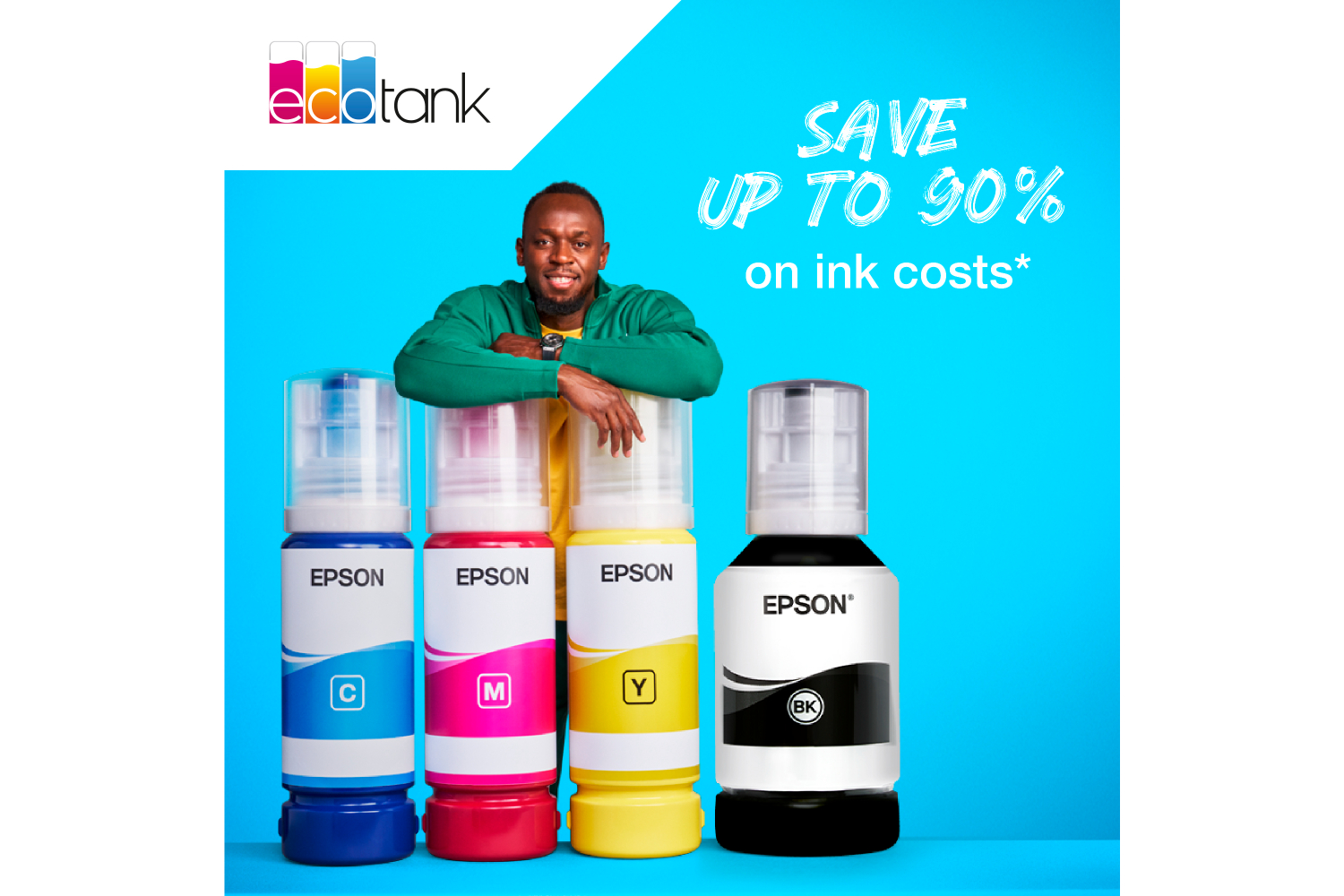 Save up to 90% on printing costs* with Epson ink bottles.