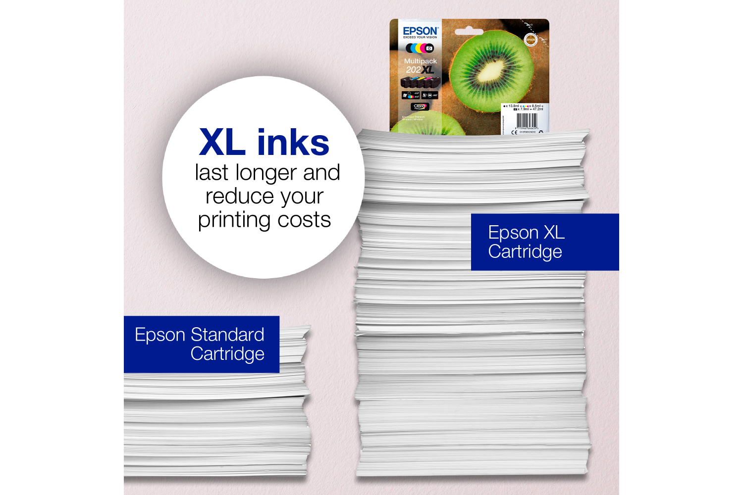 Epson offers standard and extra large (XL) ink cartridges so that you can pick the best value option for your needs. XL inks are great if you print in high volumes and can help to reduce your printing costs. With both sizes, the colours are available individually so only the colour used needs to be replaced. That means less wastage and great value.
