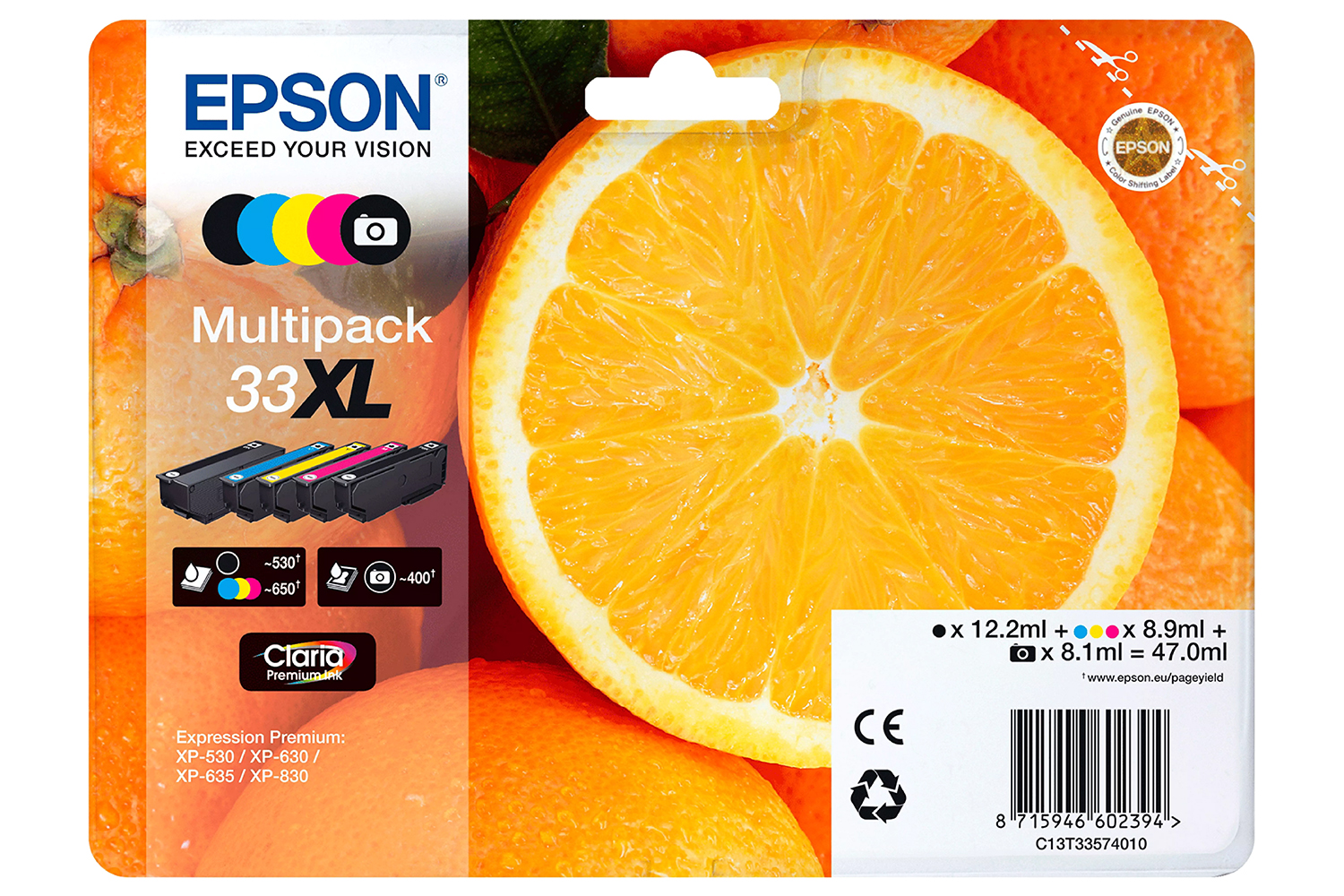 Epson 33 Oranges Single Claria Premium Ink | Black