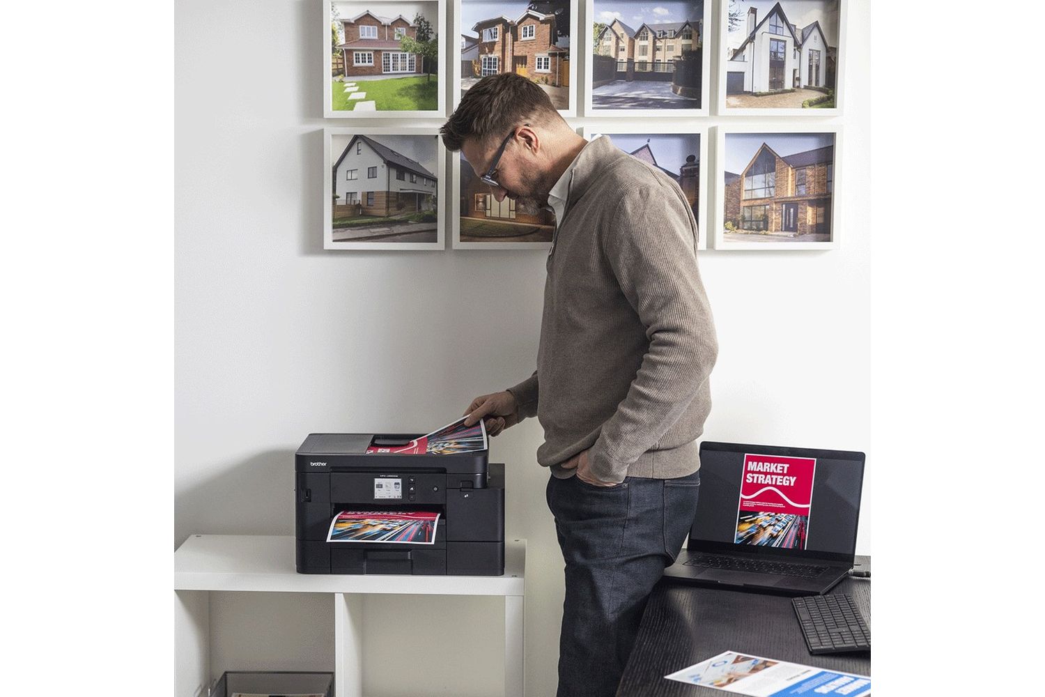 The feature-rich MFC-J4550DW inkjet printer offers superior performance with enhanced paper handling. Maximise your productivity with fast print speeds, vibrant colour quality, and extended printing with high yield supplies - helping you save on printing costs. The perfect inkjet partner, combining printing, scanning, copying, and faxing capabilities. Print directly from or scan to PC, mobile app and USB.