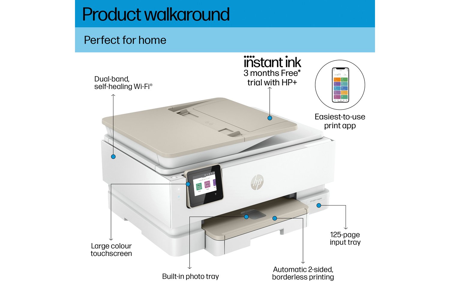 Experience a truly multipurpose home printer. With a large, 125 sheet paper tray, automatic document feeder and built-in photo tray you can quickly create stunning photos and documents whenever you need them – from any device with the HP Smart app.[3]