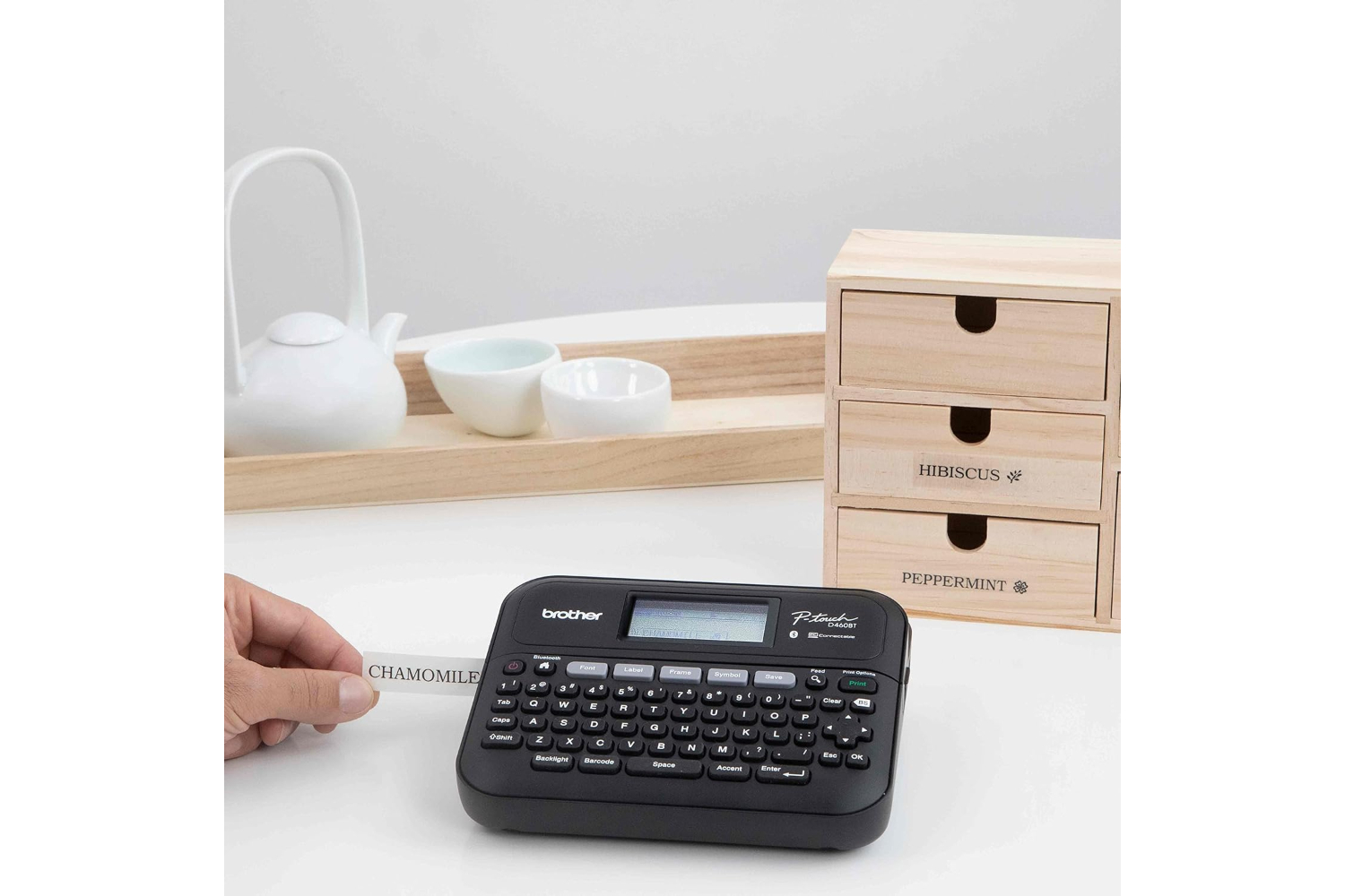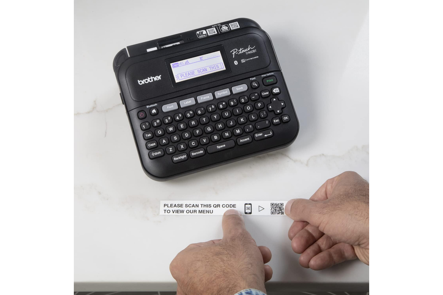 Combining organizational aptitude with creative customization and a wealth of dynamic features, the Brother P-touch PT-D460BT Business Expert Connected Label Maker keeps active businesses thriving. So much more than an ordinary label maker, it includes Brother P-Touch Editor software‡ and the iPrint&Label app, providing users the opportunity to easily create and print labels from almost anywhere. Access a wide selection of pre-designed templates or create your own custom labels by adding frames, symbols or barcodes using intuitive built-in drawing tools. Plus, advanced Bluetooth connectivity allows multiple users to access the same label maker from their own computer or smart device whenever they need to! There are so many ways the Brother P-touch PT-D460BT can help get your business organized, optimized and efficient. Print product labels, merchandise with QR codes, track inventory with barcodes, proudly add your company logo on products, displays, or shipping containers, identify assets, label, and seal confidential file boxes with tamper-proof tape, and add or revise retail pricing. You’ll be amazed by the impact this multi-tasking label maker will make to overall efficiency. Loaded with the P-touch features you love including a Qwerty keyboard, easy one-touch formatting keys, and a large 20-character x 2-line backlit screen - so you can avoid errors and preview labels before they’re printed. Choose from a selection of 16 fonts, 15 font styles, 140 frames, and 800 symbols. Store up to 70 frequently used labels for quick reprinting. Includes One 4m Black Print on White Sample Label Tape ~3/4” (18mm)‡, One 4m Black Print on Clear Sample Label Tape ~1/2” (12mm)‡, AC Adapter, USB cable and carry case.
