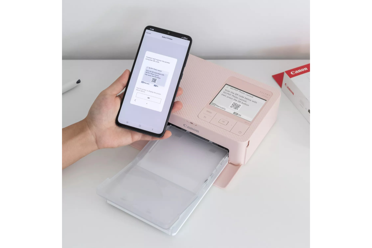 - Direct from smart device: Compatible iOS and Android devices via Wi-Fi, using app Selphy photo layout