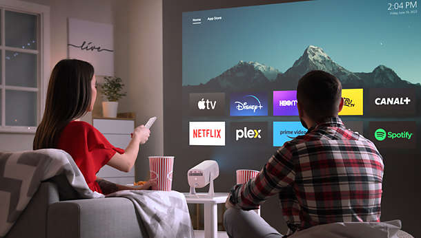 Break free from traditional viewing with the Philips NeoPix 230 Smart and its innovative 180 degree rotating stand. This feature invites you to redefine the boundaries of your entertainment — from hosting an intimate film night under a starry ceiling in your bedroom to transforming your wall into a cinema. Rotate the device and just project on any white wall. Thanks to the auto-focus and auto image adjustment, your image will always be straight!