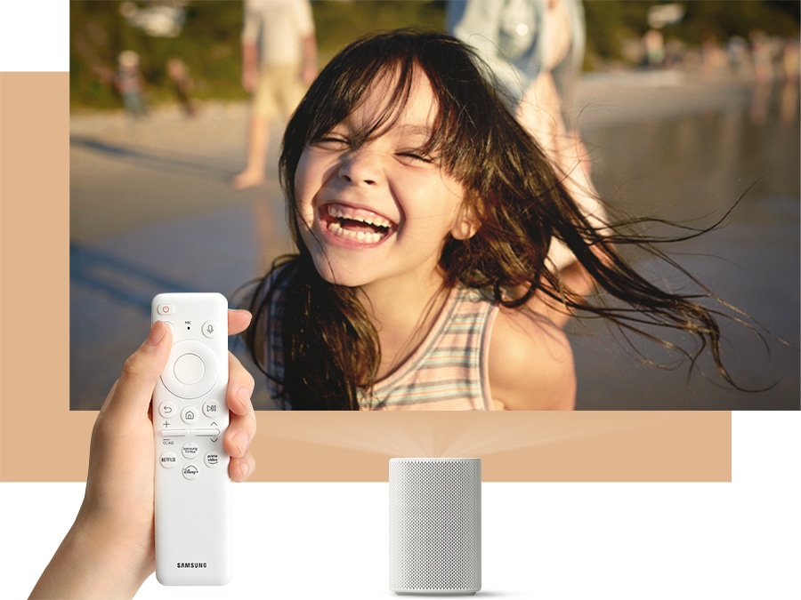 Imagine those big movie moments, sounding bigger. Dolby Atmos technology and Object Tracking Sound Lite deliver a sound experience that you can feel around you, whilst Samsung Q-Symphony boosts your viewing experience with integrated sound from your projector and soundbar.[14]