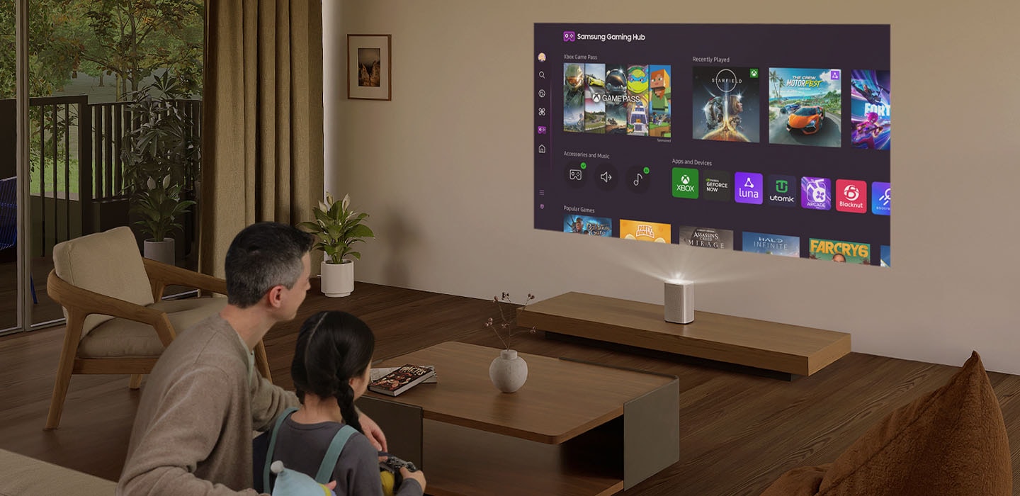 Samsung Gaming Hub brings together the biggest console and streaming games from Xbox and other industry-leading partners, all in on one place. With no downloads, storage limits or console required, just turn on your projector and play.[16]