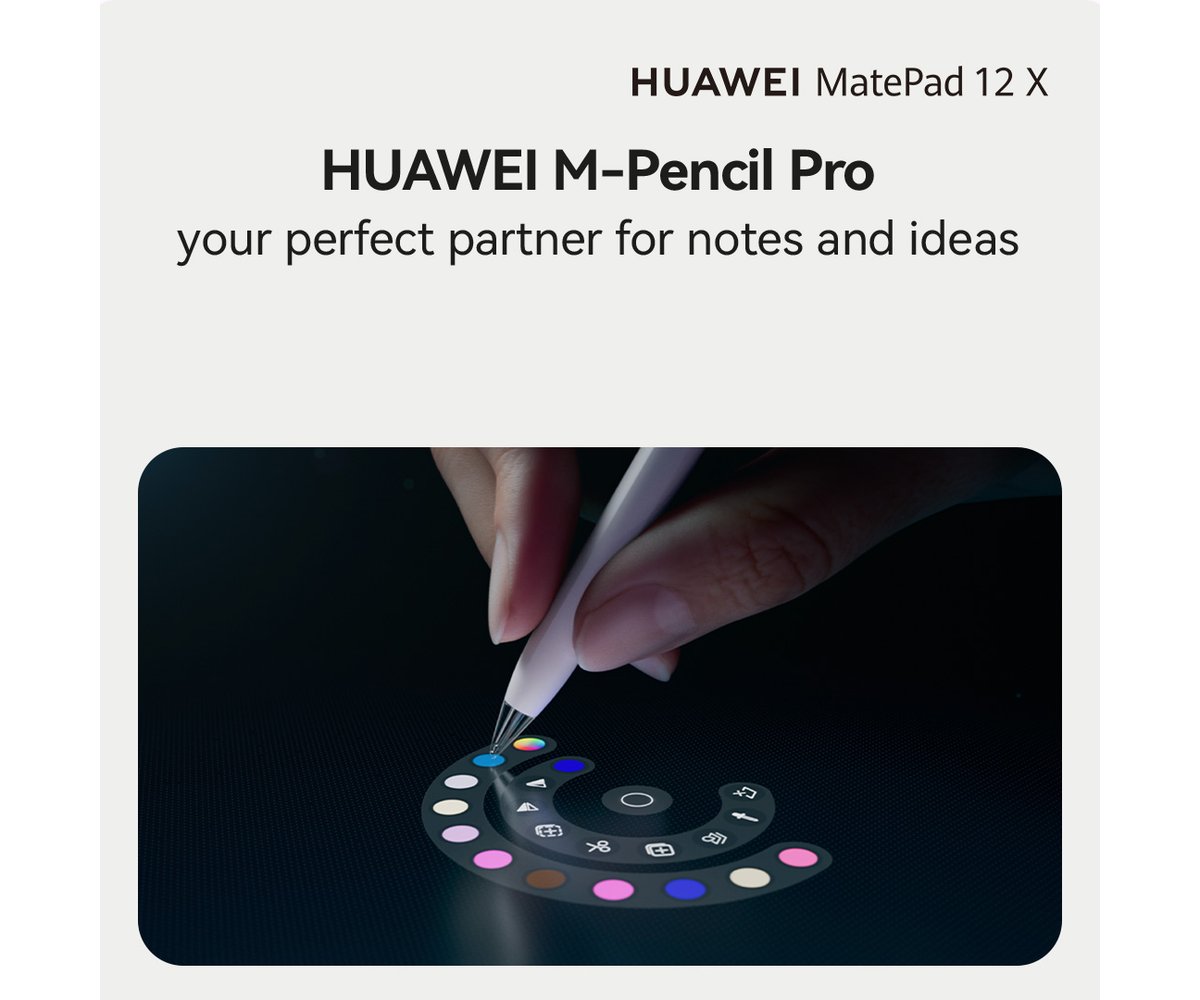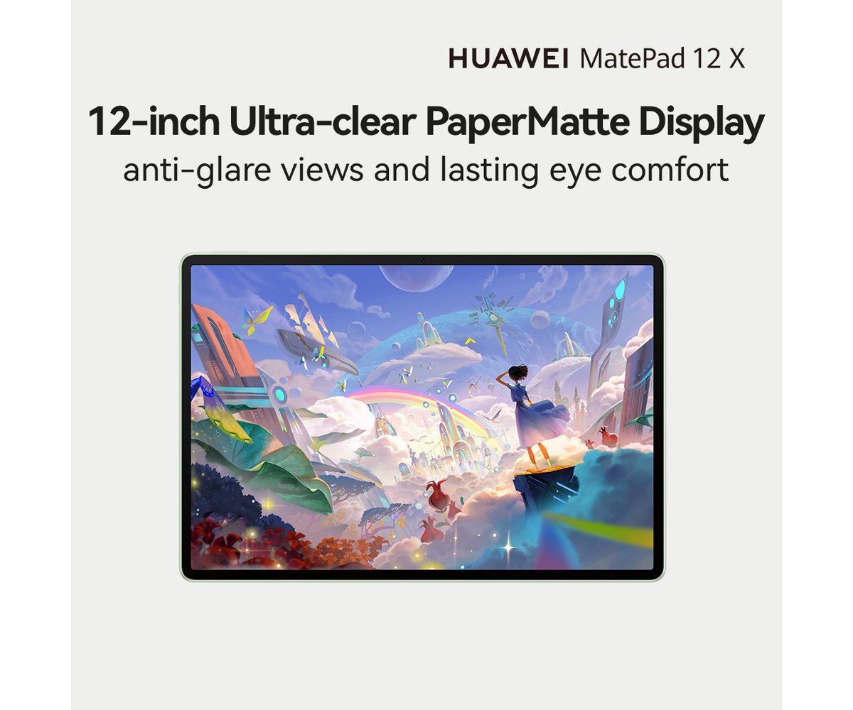 The HUAWEI MatePad 12 X is a sleek, ultra-light tablet designed to elevate your creativity, productivity, and everyday comfort. With a stunning 12-inch PaperMatte Display, it delivers a tactile, paper-like writing experience that’s gentle on your eyes and perfect for long hours of use. Whether you're sketching, studying, or multitasking, MatePad 12 X adapts to your world.