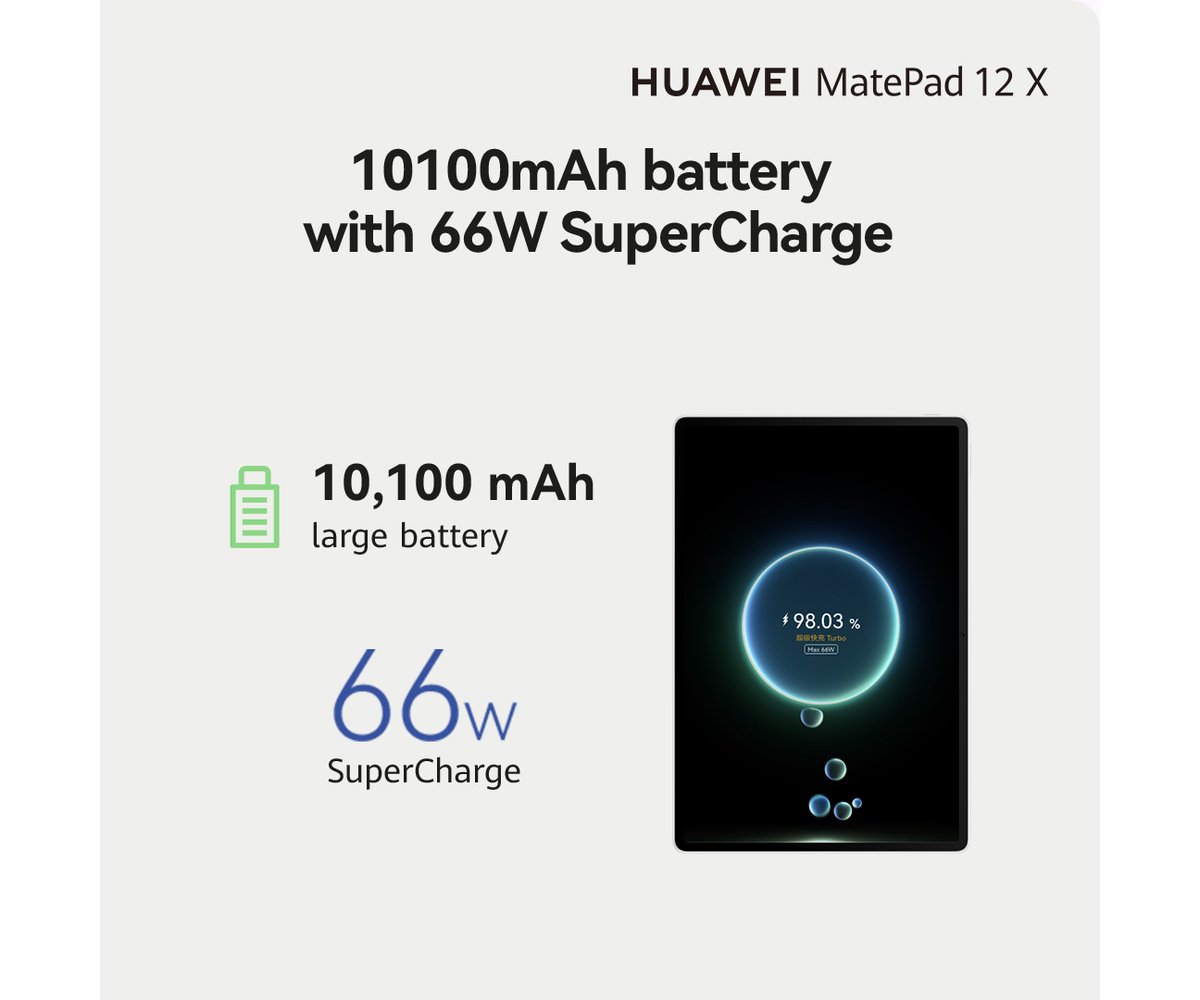 With a massive 10,100 mAh battery and 66 W SuperCharge, MatePad 12 X keeps up with your busiest days. Whether you're watching videos, attending meetings, or creating content, you’ll enjoy uninterrupted performance and fast charging that fits your schedule.
