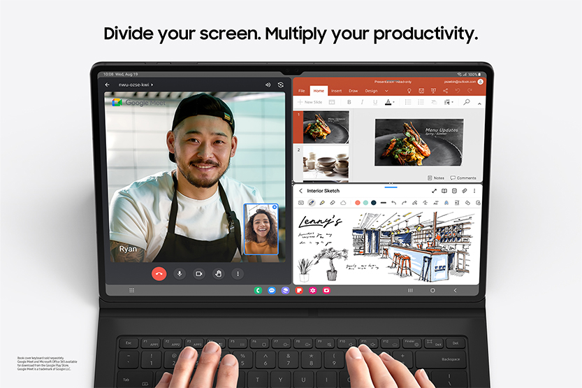 With mind-blowing AI tech, Galaxy Tab S9 is like having your very own super-informed, multilingual PA. Discover more about anything on your tablet screen – web, socials, or even your camera – with Circle to Search with Google*. Scrolling online and want to know where those hot new trainers are from? Without switching apps, just circle any object with S Pen or a fingertip, and hey presto, instant search results. Browse Assist is a real-time-saver, summarizing long or complicated web pages into succinct bullet points. And you can leave the meeting minutes to Transcript Assist: it writes up the conversation for you and clearly marks who said what. And impress everyone – from your boss to your social followers – with Chat Assist, which provides context-based suggestions as you type so you always strike the right tone.