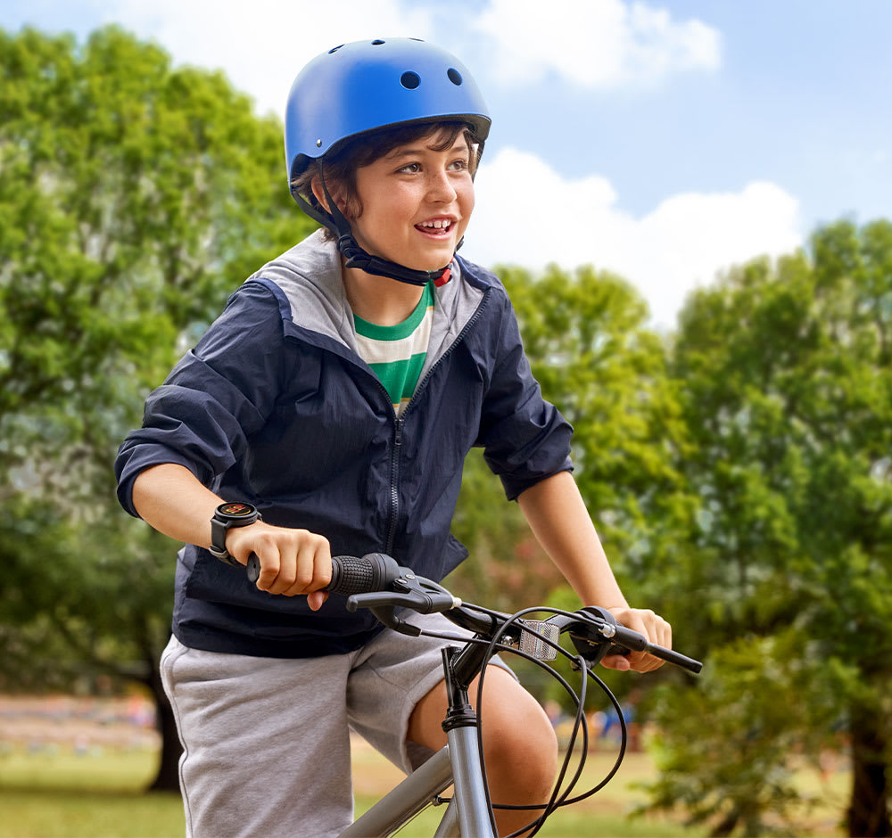 Built-in sports apps use GPS to let your child track running, walking and biking activities. They can also record laps while swimming or can log other activities. Plus, track their daily steps, and check that they’re getting enough rest with sleep tracking[4].