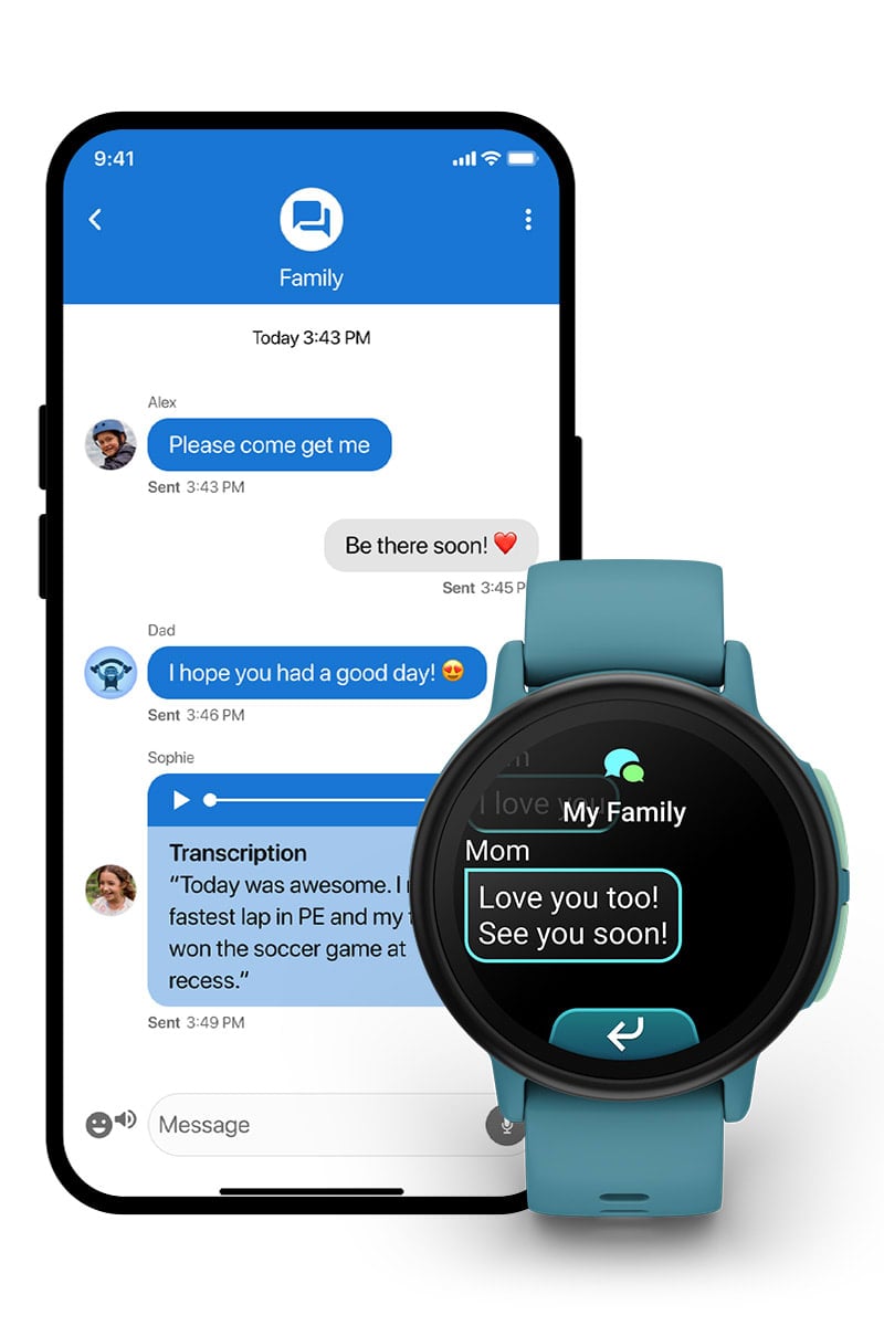 Use the Garmin Jr. app to call your child’s Bounce[1] plus send and receive voice messages. In response, you can also receive voice messages with transcriptions.