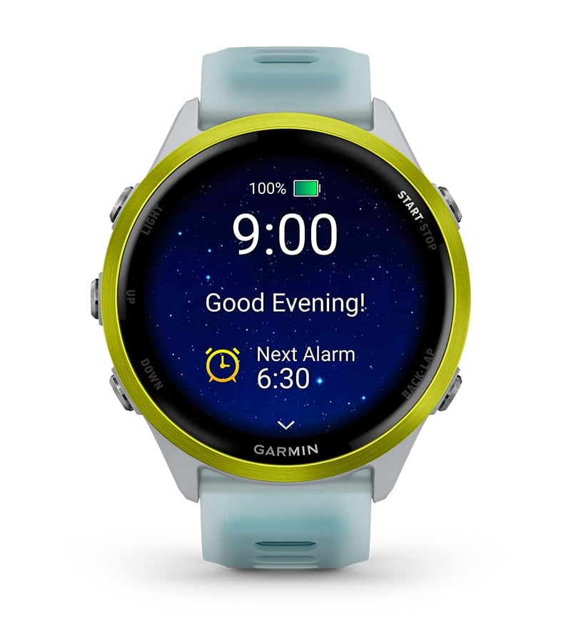 With Garmin brightest amoled display and lightweight aluminium bezel.