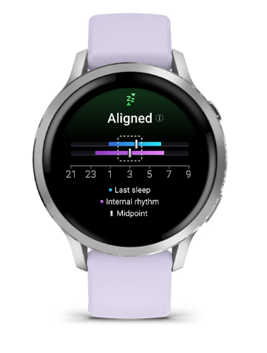 Get a sleep score and personalised coaching for how much sleep you need and how you can improve. Even keep track of different sleep stages and naps — and see key metrics, such as HRV status and skin temperature [3], to better understand your health. Plus, with the sleep alignment feature, see how aligned you are to your circadian rhythm, and see your sleep consistency.