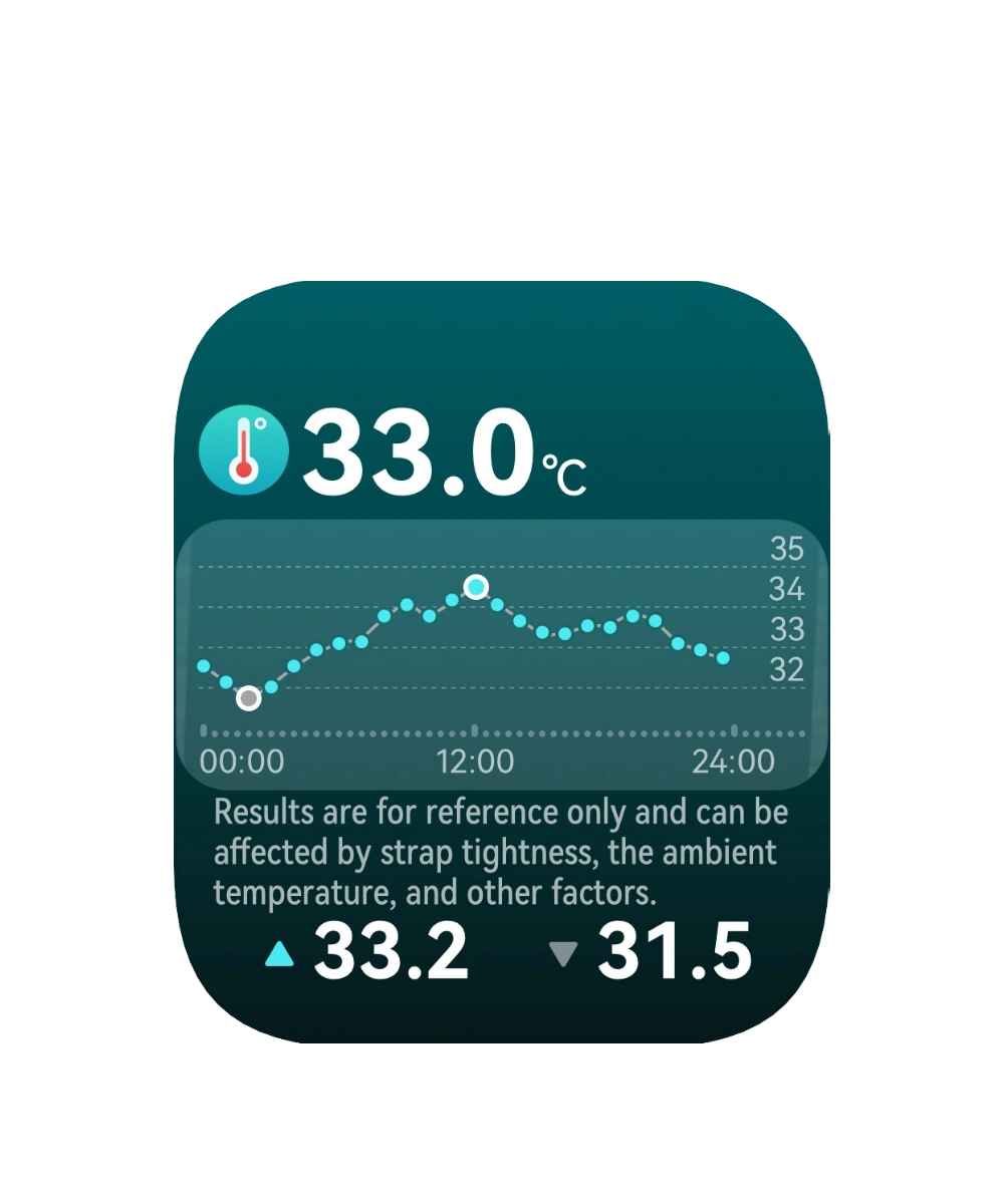 12.This feature is not intended for medical use. A built-in sensor is used to measure wrist skin temperature and generate a corresponding skin temperature estimate. This feature is intended to monitor changes in wrist skin temperature and body temperature in healthy individuals over the age of 18 during and after exercise. Results are for reference only, and should not be used as a basis for medical diagnosis or treatment.