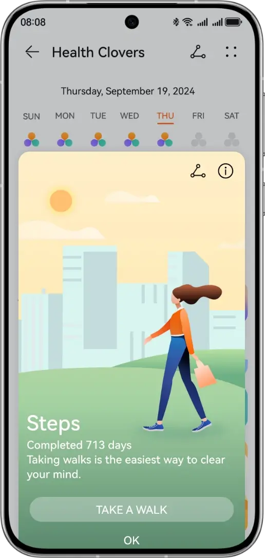 The app uses HUAWEI TruSense data to tell you how you're feeling in the moment. Raise your wrist to see your mood, and marvel as the panda's expression changes to match your own state of mind.[4]